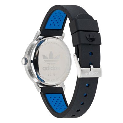 Questo orologio Adidas ha una cassa in Inox con un diametro di 38 mm ed è dotato di un cinturino in gomma. All'interno della cassa si trova un movimento di Timex e l'orologio è dotato di un cristallo di Minerale.