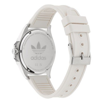 Questo orologio Adidas ha una cassa in Inox con un diametro di 40 mm ed è dotato di un cinturino in gomma. All'interno della cassa si trova un movimento di Timex e l'orologio è dotato di un cristallo di Minerale.
