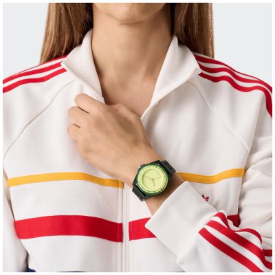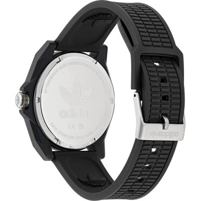 Questo orologio Adidas ha una cassa in Resina con un diametro di 41 mm ed è dotato di un cinturino in Resina. All'interno della cassa si trova un movimento di Timex e l'orologio è dotato di un cristallo di Acrilico.