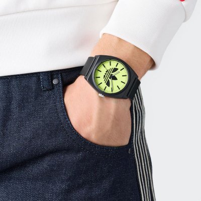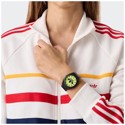 Questo orologio Adidas ha una cassa in Resina con un diametro di 38 mm ed è dotato di un cinturino in Resina. All'interno della cassa si trova un movimento di Timex e l'orologio è dotato di un cristallo di Acrilico.