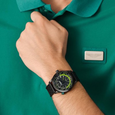 Questo orologio Aston Martin ha una cassa in Inox con un diametro di 41 mm ed è dotato di un cinturino in gomma. All'interno della cassa si trova un movimento di Timex e l'orologio è dotato di un cristallo di Minerale.