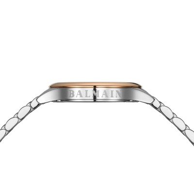 Questo orologio Balmain ha una cassa in Inox con un diametro di 29 mm ed è dotato di un cinturino in Inox. All'interno della cassa si trova un movimento di ETA e l'orologio è dotato di un cristallo di Zaffiro.
