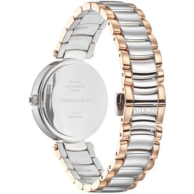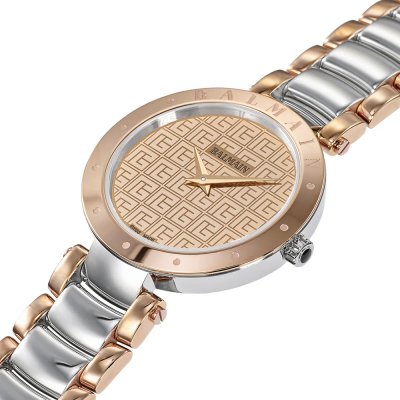 Questo orologio Balmain ha una cassa in Inox con un diametro di 33 mm ed è dotato di un cinturino in Inox. All'interno della cassa si trova un movimento di ETA e l'orologio è dotato di un cristallo di Zaffiro.