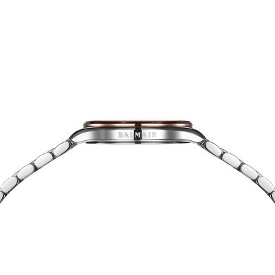 Questo orologio Balmain ha una cassa in Inox con un diametro di 32 mm ed è dotato di un cinturino in Inox. All'interno della cassa si trova un movimento di ETA e l'orologio è dotato di un cristallo di Zaffiro.