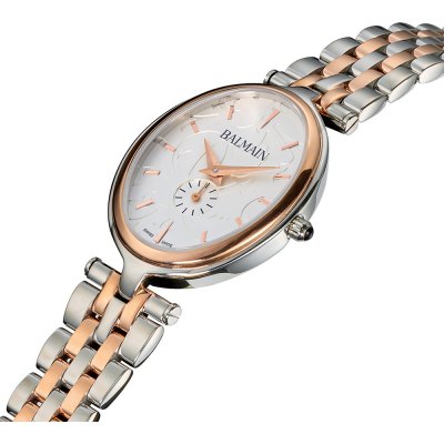 Questo orologio Balmain ha una cassa in Inox con un diametro di 26 mm ed è dotato di un cinturino in Inox. All'interno della cassa si trova un movimento di ETA e l'orologio è dotato di un cristallo di Zaffiro.
