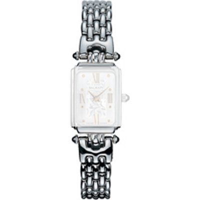 Questo cinturino Balmain è fatto in acciaio inox ed è collegato all'orologio per mezzo di vite della sella. Il cinturino ha una larghezza di 11 mm e si chiude a mezzo di chiusura a gioiello. Il cinturino non ha montatura dritta, il che significa che questo cinturino è adatto solo per gli orologi elencati di seguito.