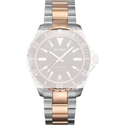 Questo cinturino Balmain è fatto in acciaio inox ed è collegato all'orologio per mezzo di perni a molla. Il cinturino ha una larghezza di 21 mm e si chiude a mezzo di chiusura a farfalla con bottoni. Il cinturino non ha montatura dritta, il che significa che questo cinturino è adatto solo per gli orologi elencati di seguito.