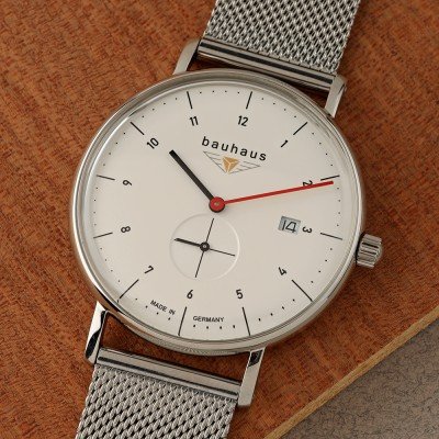 Questo orologio Bauhaus ha una cassa in Inox con un diametro di 41 mm ed è dotato di un cinturino in Inox. All'interno della cassa si trova un movimento di Ronda e l'orologio è dotato di un cristallo di K1 Minerale.
