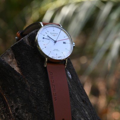 Questo orologio Bauhaus ha una cassa in Inox con un diametro di 41 mm ed è dotato di un cinturino in Pelle. All'interno della cassa si trova un movimento di Miyota e l'orologio è dotato di un cristallo di K1 Minerale.