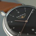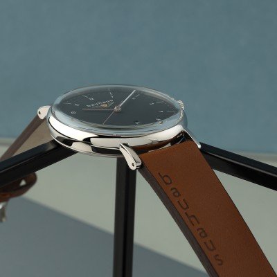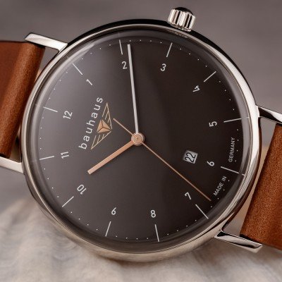 Questo orologio Bauhaus ha una cassa in Inox con un diametro di 41 mm ed è dotato di un cinturino in Pelle. All'interno della cassa si trova un movimento di Ronda e l'orologio è dotato di un cristallo di K1 Minerale.