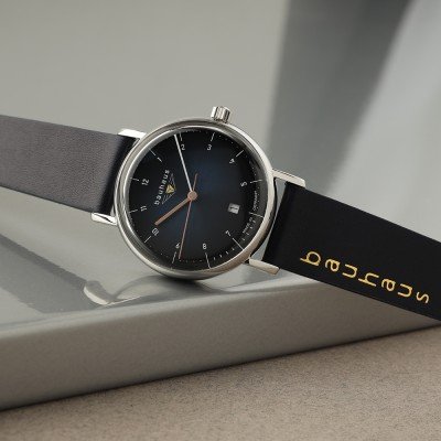 Questo orologio Bauhaus ha una cassa in Inox con un diametro di 36 mm ed è dotato di un cinturino in Pelle. All'interno della cassa si trova un movimento di Ronda e l'orologio è dotato di un cristallo di K1 Minerale.