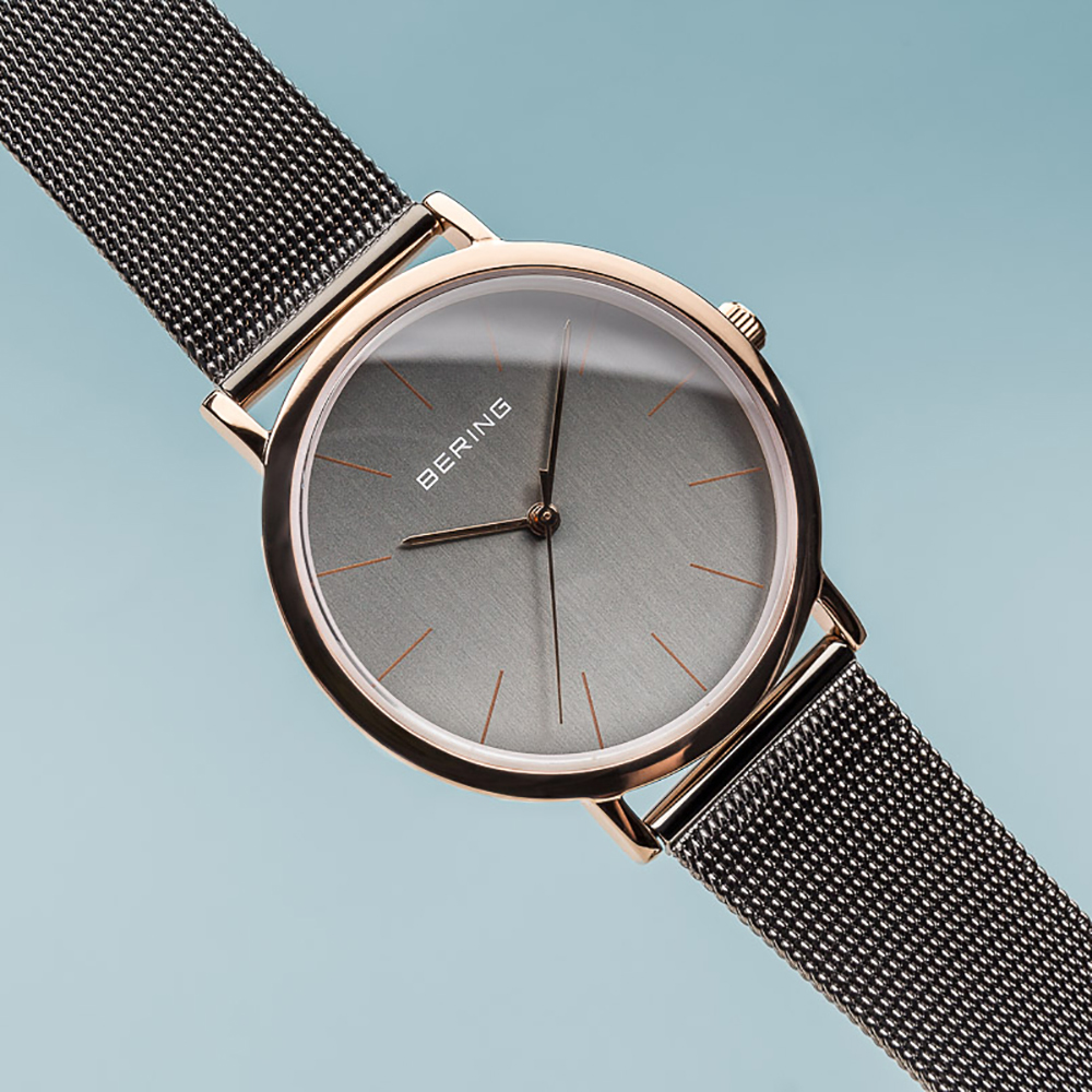 Questo orologio Bering ha una cassa in acciaio inox oro rosa con un diametro di 36 mm ed è dotato di un cinturino in Metallo. All'interno ha un movimento quarzo per orologi di qualità ed è finito con un vetro di tipo Zaffiro.