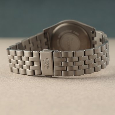 Questo orologio Boccia ha una cassa in Titanio con un diametro di 39 mm ed è dotato di un cinturino in Titanio. All'interno della cassa si trova un movimento di Miyota e l'orologio è dotato di un cristallo di Zaffiro.