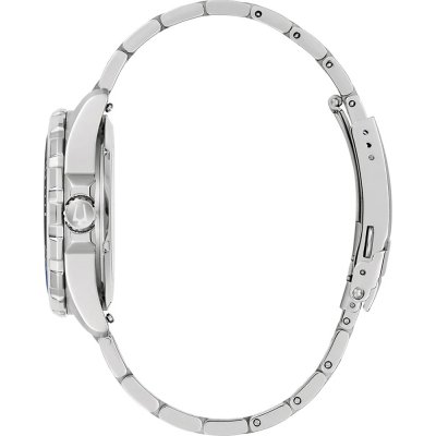 Questo orologio Bulova ha una cassa in Inox con un diametro di 41 mm ed è dotato di un cinturino in Inox. All'interno della cassa si trova un movimento di Miyota e l'orologio è dotato di un cristallo di Zaffiro.