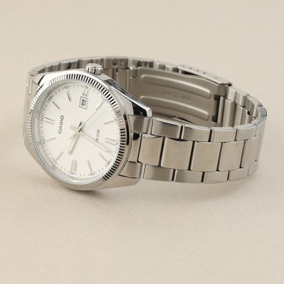 Questo orologio Casio ha una cassa in Lega metallica con un diametro di 38.5 mm ed è dotato di un cinturino in Inox. All'interno della cassa si trova un movimento di Casio e l'orologio è dotato di un cristallo di Minerale.