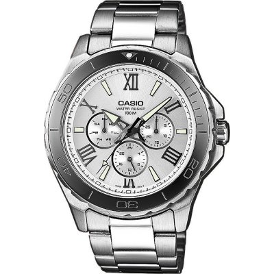 Questo cinturino Casio è fatto in acciaio inox ed è collegato all'orologio per mezzo di perni a molla. Il cinturino ha una larghezza di 22 mm e si chiude a mezzo di chiusura deployante con bottoni. Il cinturino non ha montatura dritta, il che significa che questo cinturino è adatto solo per gli orologi elencati di seguito.