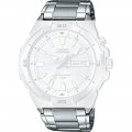 Questo cinturino Casio è fatto in acciaio inox ed è collegato all'orologio per mezzo di perni a molla. Il cinturino ha una larghezza di 24 mm e si chiude a mezzo di chiusura deployante. Il cinturino non ha montatura dritta, il che significa che questo cinturino è adatto solo per gli orologi elencati di seguito.