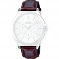 Questo cinturino Casio è fatto in pelle ed è collegato all'orologio per mezzo di perni a molla. Il cinturino ha una larghezza di 18 mm e si chiude a mezzo di fibbia. Il cinturino ha un attacco dritto, il che significa che questo cinturino è adatto a tutti gli orologi di Casio con attacco dritto.