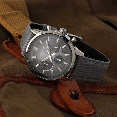 Questo orologio Casio Edifice ha una cassa in Inox con un diametro di 41 mm ed è dotato di un cinturino in Tessuto su pelle. All'interno della cassa si trova un movimento di Casio e l'orologio è dotato di un cristallo di Minerale.