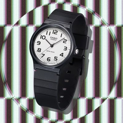Questo orologio Casio ha una cassa in Resina con un diametro di 34.9 mm ed è dotato di un cinturino in Resina. All'interno della cassa si trova un movimento di Ronda e l'orologio è dotato di un cristallo di Acrilico.