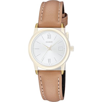 Questo cinturino Casio è fatto in pelle ed è collegato all'orologio per mezzo di perni a molla. Il cinturino ha una larghezza di 14 mm e si chiude a mezzo di fibbia. Il cinturino ha un attacco dritto, il che significa che questo cinturino è adatto a tutti gli orologi di Casio con attacco dritto.