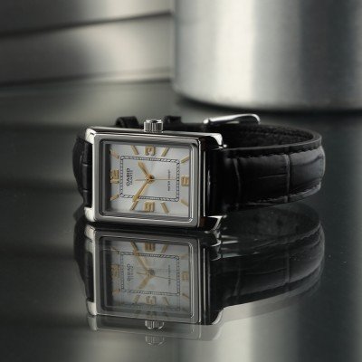 Questo orologio Casio ha una cassa in Inox con un diametro di 21 mm ed è dotato di un cinturino in Pelle. All'interno della cassa si trova un movimento di Casio e l'orologio è dotato di un cristallo di Minerale.