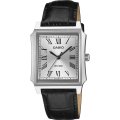 Questo orologio Casio ha una cassa in Inox con un diametro di 32 mm ed è dotato di un cinturino in Pelle. All'interno della cassa si trova un movimento di Casio e l'orologio è dotato di un cristallo di Minerale.