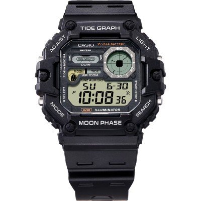 Questo orologio Casio ha una cassa in Plastica / Resina con un diametro di 50.1 mm ed è dotato di un cinturino in Resina. All'interno della cassa si trova un movimento di Casio e l'orologio è dotato di un cristallo di Acrilico.
