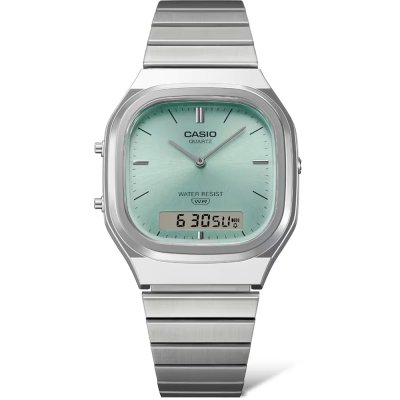 Questo orologio Casio ha una cassa in Resina con un diametro di 36 mm ed è dotato di un cinturino in Inox. All'interno della cassa si trova un movimento di Casio e l'orologio è dotato di un cristallo di Acrilico.