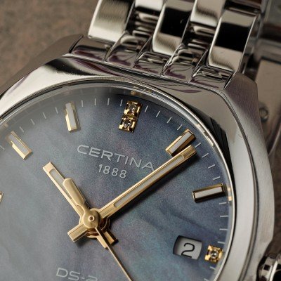 Questo orologio Certina ha una cassa in Inox con un diametro di 28 mm ed è dotato di un cinturino in Inox. All'interno della cassa si trova un movimento di ETA e l'orologio è dotato di un cristallo di Zaffiro singolo antiriflesso.