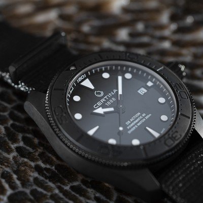 Questo Certina DS Action Diver è realizzato in nero stealth con lancette e indici di colore blu per una leggibilità ottimale al buio e sott'acqua. È animato da un movimento automatico 80.611 a 25 rubini con una riserva di carica di 80 ore. Con una resistenza all'acqua di 30 ATM e una lunetta unidirezionale, è un orologio subacqueo a tutto tondo che si rivolge anche agli amanti dello stile subacqueo. L'esecuzione nera opaca e il cinturino NATO in plastica nera oceanica conferiscono all'orologio un look sportivo e sobrio, rendendolo adatto a essere indossato tutti i giorni e alle attività sportive.