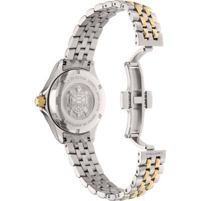 Questo orologio Certina ha una cassa in Titanio con un diametro di 33.8 mm ed è dotato di un cinturino in Titanio. All'interno della cassa si trova un movimento di ETA e l'orologio è dotato di un cristallo di Zaffiro singolo antiriflesso.