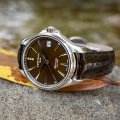 Questo orologio Certina ha una cassa in Inox con un diametro di 33.8 mm ed è dotato di un cinturino in Pelle. All'interno della cassa si trova un movimento di ETA e l'orologio è dotato di un cristallo di Zaffiro.