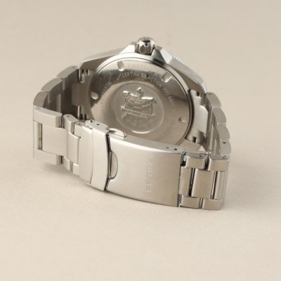 Questo orologio Certina ha una cassa in Inox con un diametro di 38 mm ed è dotato di un cinturino in Inox. All'interno della cassa si trova un movimento di ETA e l'orologio è dotato di un cristallo di Zaffiro singolo antiriflesso.