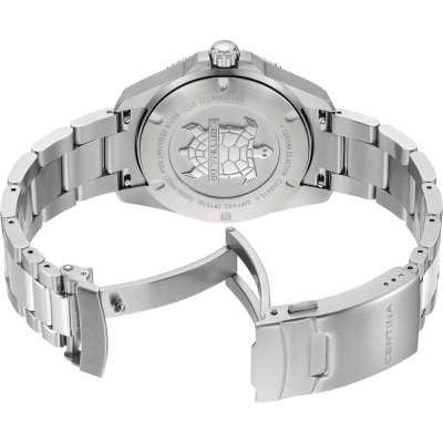 Questo orologio Certina ha una cassa in Inox con un diametro di 40 mm ed è dotato di un cinturino in Inox. All'interno della cassa si trova un movimento di ETA e l'orologio è dotato di un cristallo di Zaffiro singolo antiriflesso.