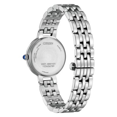 Questo orologio Citizen ha una cassa in Inox con un diametro di 27.7 mm ed è dotato di un cinturino in Inox. All'interno della cassa si trova un movimento di Citizen e l'orologio è dotato di un cristallo di Zaffiro.