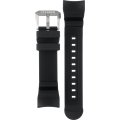 Questo cinturino Citizen è fatto in gomma ed è collegato all'orologio per mezzo di perni a molla. Il cinturino ha una larghezza di 24 mm e si chiude a mezzo di fibbia. Il cinturino non ha montatura dritta, il che significa che questo cinturino è adatto solo per gli orologi elencati di seguito.