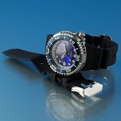 Questo orologio Promaster offre tutto ciò che ci si aspetta da un orologio subacqueo Citizen. È stato realizzato in edizione limitata a 4800 esemplari e presenta un cinturino da immersione ecologico in Benebiol - plastica a base di biomassa - con la caratteristica struttura a onde estese. Il movimento Cal. E365 Eco-Drive ha una precisione di ±15 secondi al mese e funziona fino a un anno con una carica completa. L'orologio è certificato ISO per un'impermeabilità standard fino a 30 atm (immersioni in saturazione).