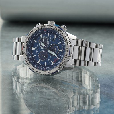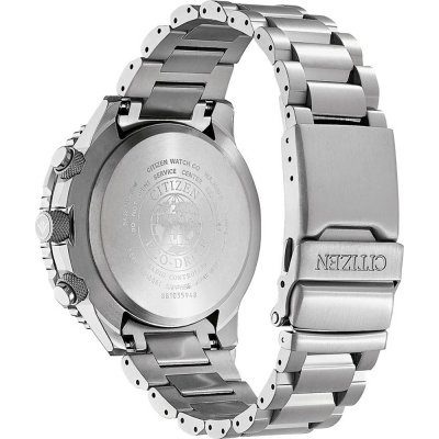Questo orologio Citizen ha una cassa in Inox con un diametro di 47 mm ed è dotato di un cinturino in Inox. All'interno della cassa si trova un movimento di Citizen e l'orologio è dotato di un cristallo di Zaffiro.
