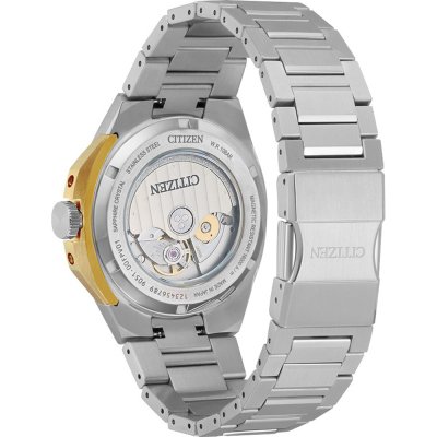 Questo orologio Citizen ha una cassa in Inox con un diametro di 40 mm ed è dotato di un cinturino in Inox. All'interno della cassa si trova un movimento di Citizen e l'orologio è dotato di un cristallo di Zaffiro singolo antiriflesso.