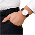 Questo orologio Bristol 40 mm della gamma Classic by Daniel Wellington ha una cassa oro rosa e un quadrante bianco. Un elegante cinturino in pelle marrone scuro aggiunge un tocco casual al look elegante.
