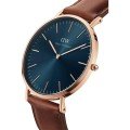Questo orologio Daniel Wellington ha una cassa in Inox con un diametro di 40 mm ed è dotato di un cinturino in Pelle. All'interno della cassa si trova un movimento di Miyota e l'orologio è dotato di un cristallo di Minerale.