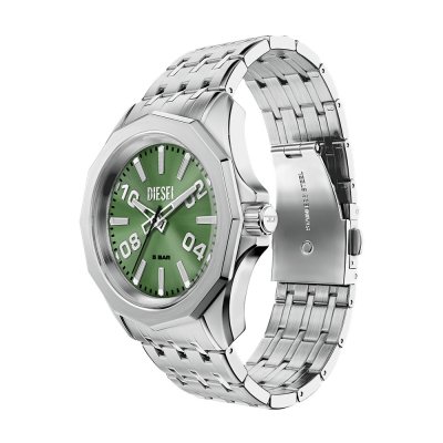 Questo orologio Diesel ha una cassa in Inox con un diametro di 44 mm ed è dotato di un cinturino in Inox. All'interno della cassa si trova un movimento di Miyota e l'orologio è dotato di un cristallo di Minerale.