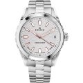 Questo orologio Edox ha una cassa in Inox con un diametro di 33 mm ed è dotato di un cinturino in Inox. All'interno della cassa si trova un movimento di Ronda e l'orologio è dotato di un cristallo di Zaffiro.
