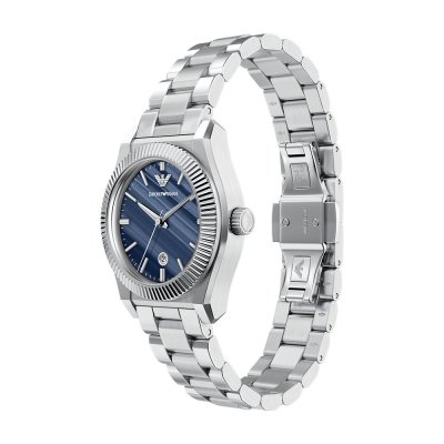 Questo orologio Emporio Armani ha una cassa in Inox con un diametro di 32 mm ed è dotato di un cinturino in Inox. All'interno della cassa si trova un movimento di Miyota e l'orologio è dotato di un cristallo di Minerale.