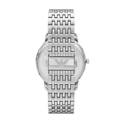 Questo orologio Emporio Armani ha una cassa in Inox con un diametro di 42 mm ed è dotato di un cinturino in Inox. All'interno della cassa si trova un movimento di Miyota e l'orologio è dotato di un cristallo di Minerale.