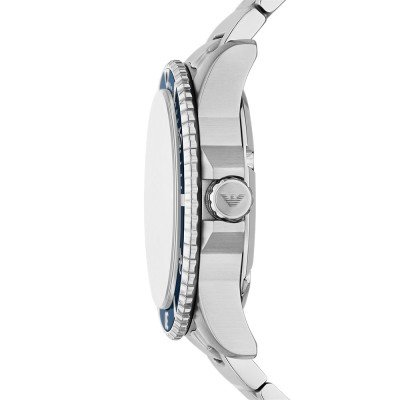 Questo orologio Emporio Armani ha una cassa in Inox con un diametro di 42 mm ed è dotato di un cinturino in Inox. All'interno della cassa si trova un movimento di Miyota e l'orologio è dotato di un cristallo di Minerale.