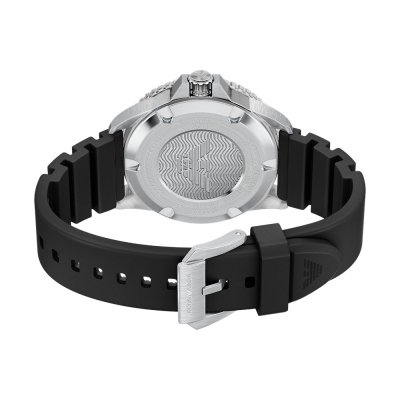 Questo orologio Emporio Armani ha una cassa in Inox con un diametro di 42 mm ed è dotato di un cinturino in gomma. All'interno della cassa si trova un movimento di Miyota e l'orologio è dotato di un cristallo di Minerale.