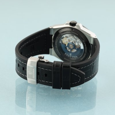 Questo orologio Festina ha una cassa in Inox con un diametro di 42 mm ed è dotato di un cinturino in gomma. All'interno della cassa si trova un movimento di Soprod e l'orologio è dotato di un cristallo di Zaffiro.
