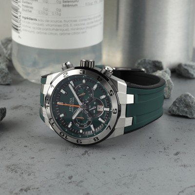 Questo orologio Festina ha una cassa in Inox con un diametro di 44.5 mm ed è dotato di un cinturino in gomma. All'interno della cassa si trova un movimento di Miyota e l'orologio è dotato di un cristallo di Minerale.
